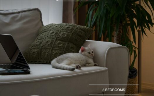 It has a living room, dining room-kitchen, open space, bathroom, wc, 3 bedrooms, large per
